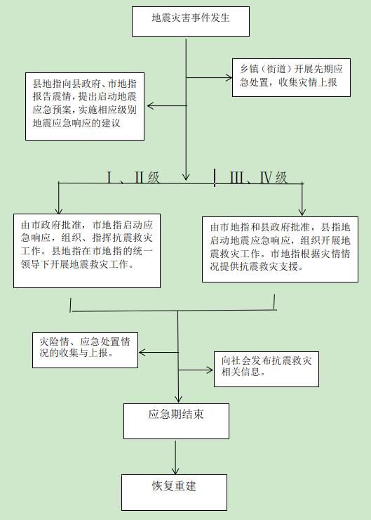 应对重大地震灾害,启动Ⅱ级响应。在市委、市政府的统一领导下,市地指领导、指挥灾区的抗震救灾工作。县委、县政府做好先期应急处置工作。